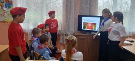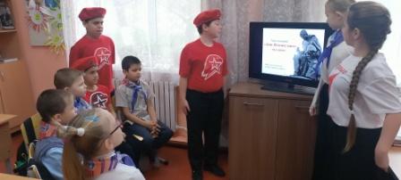Активистки Движения Первых Махтиева Камила и Хамидова Альбина рассказали о ходе войны, о военном параде 7 ноября на Красной площади, о планах фашистов «Барбаросса». Ребята с интересом слушали о подвигах Героев в битве за Москву: об использовании аэростатов, которые были нужны, чтобы затруднить немцам бомбометание по городу, а также о том, какие важные функции выполнял московский метрополитен.