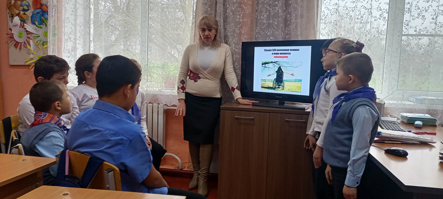 С учениками начальной школы была проведена беседа с целью формирования позитивного восприятия мира и повышение детской осведомленности о проблемах людей с ограниченными возможностями.