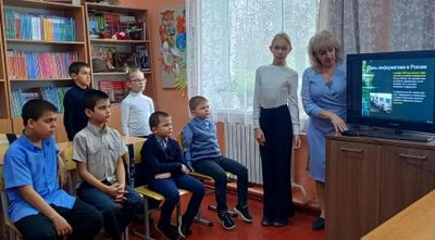 c учащимися 2, 4 классов проведен информационный час " День информатики в России"